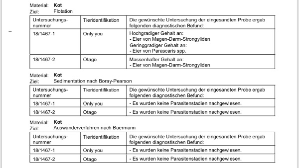 Ich bin mir auf jeden Fall mit der Dame vom ZSE einig, dass die Ergebnisse ziemlich seltsam sind. Und eine Nachbeprobung 14Tage nach WK mit diesen Zahlen in den wenigsten Fällen aufschlussreich sein kann.