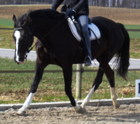 Auf beiden Bildern fehlt - wie du selber schon sagst - vor allem die Hinterhand und die positive Spannung, die eine aktive Dehnung bewirken könnte (wobei ich das wie gesagt im Trab einfacher finde als im Schritt).