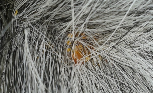 Heute hat er plötzlich den kompletten Schweif entlang diese gelben Krusten, die ja Wundflüssigkeit sein sollen... diese klar- gelben Gnubbel sind bis zu 1cm hoch und überall auf der Haut am Schweif sitzen die! Als ich einige raus gezogen habe, waren Schweifhaare mit dran. Habs dann lieber gelassen...