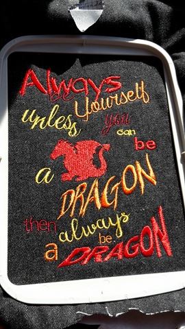 Das ist ein Quilt... mein Test für selbst-entworfene Stickmaschinen-Dateien... sind 34 unterschiedliche Blöcke a 10x10 cm... die man sich quasi beliebig zusammen stellen kann. Die Decke da ist ca. 70x90 wenn sie ganz fertig ist (hinten muss noch was gegen und der Rand muss noch gemacht werden).