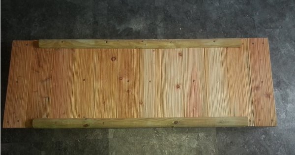 30mm dicke Douglasie auf Fichtenbalken (die noch wetterschutzgestrichen werden).
