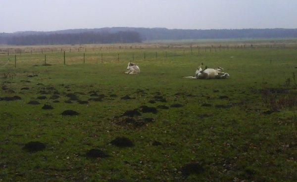 Meinst mich? Meine Stute (27) liegt immer, wenn der Boden ihr genehm ist, also halbwegs trocken (Sand/Wiese). Wälzen auch, wenn es feuchter ist, also auf Weide fast täglich, immer schön einsauen