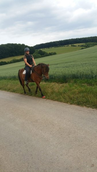 So noch ein Bild vom ersten Ausritt, und danach hatte ich ein super glückliches Pony, es war ganz komisch sie kam mir so vor als wolle sie sich bedanken bei mir. So hatte ich sie noch nie erlebt. Ich hoffe ihr haltet mich jetzt nicht für Balla aber mein Mann meinte auch, die hängt ja plötzlich an dir und strahlt dich an.