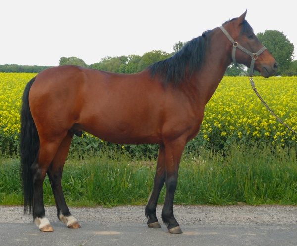 Wenn ich jetzt einschaetzen sollte, wie er sich beim reiten anfuehlt - ich wuerde sagen der ruecken und die haltung laden nicht gerade dazu ein, dass er schoen und entspannt laeuft, aber wenn er es tut, vermute ich eine sehr nette manier. Ich vermute er ist entweder sehr hoch oder aber eingerollt, und es ist nicht leicht, ihn vernuenftig zu reiten (also vorwaerts/abwaerts an das gebiss heran oder aber mit dem genick am hoechsten punkt in arbeitshaltung), fuer ihn noch wichtiger als fuer die meisten pferde.