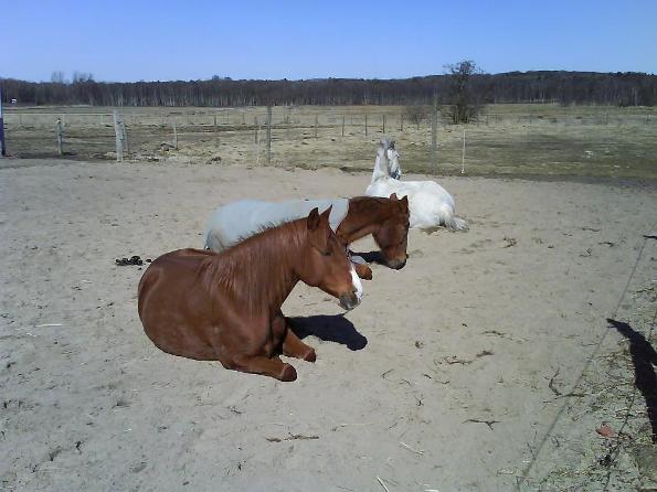 Bei uns ist noch eine alte Traber-Stute (jetzt 33), die auch noch liegt: