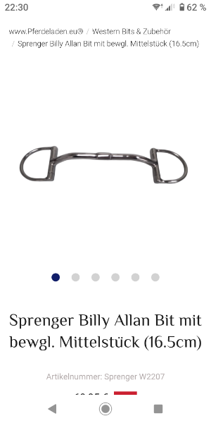 Was das Billy Allen angeht, mir wurde gesagt, daß man für dieses Gebiß sehr ruhige Hände braucht, weil es schon "scharf" sei.... In der Beschreibung steht, daß es ein sehr sanftes, weiches Gebiß ist....