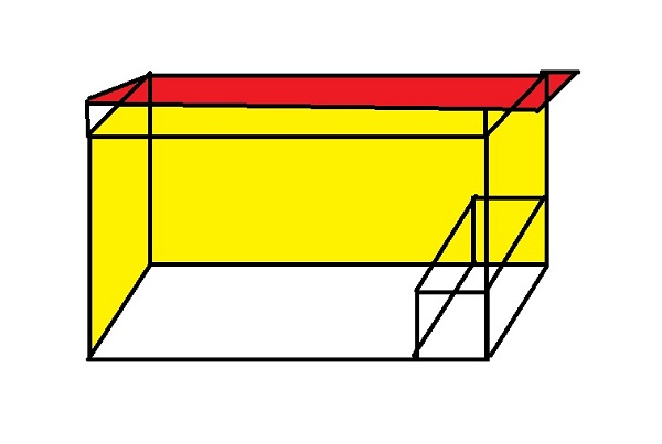 die gelben waende werden geschlossen sein, der rest bleibt offen, und rechts ist die heukiste, die so gross sein wird, dass man zwei ganze rundballen reinrollen kann. Ein netz bringe ich dort nicht an, nur vorne wird das ganze mit einem netz verschlossen (also dort, wo man die ballen einrollt). So koennen die pferde von 3 seiten ans heu, aber das wasser tropft ihnen nicht auf den ruecken (das mochte ich an dem einen design hier nicht so, da lief das wasser vom dach ab, genau auf den ruecken der pferde...)