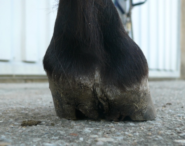 Dann ist mir der Huf zu steil und die Zehe schnabelt etwas. Hier würde ich die Trachten kürzen
