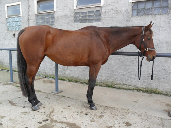 Ihr Exterieur ist wirklich schon sehr - ungewoehnlich sag ich mal. Weiss gar nicht, wo ich anfangen soll... Meine vermutung waere jetzt dass sie schon aelter ist und eventuell ein paar Fohlen gehabt hat (irgendwie die becken/rueckenstellung?) Der hals ist tief angesetzt und beinahe waagerecht, also ungeschwungen, dazu die steile schulter, leicht rueckstellige vorhand mit mini-huefchen, etwas schwerer Kopf, extrem kurze vorhand, lange mitte, normale hinterhand, die dafuer aber ueberdimensional zum extrem ist. waagerechte kruppe und sehr hoch angesetzter schweif, dazu leicht saebelbeinig - puh.