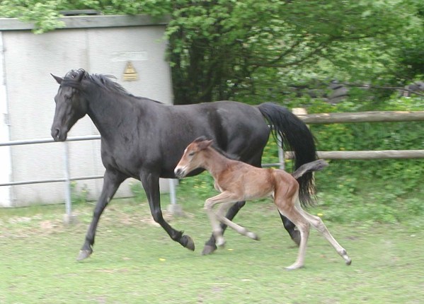 Stütchens Opa war auch schon in meinem Besitz: ein schwarzer Hengst. Mama war auch Rappe, aber Stütchen wollte einfach nicht schwarz werden. Aber ich lieb sie auch so :mrgreen: