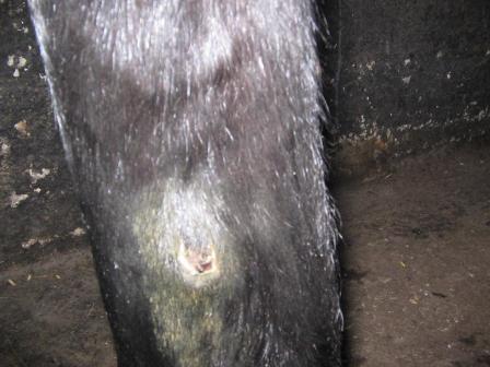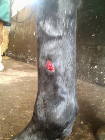 - wenn wir den Pferdestall schon nicht steril bekommen, dann können wir wenigstens zusehen, dass sich da die richtige Art von Mikroorganismen in der Wunde tummeln), die Heilerde kann auf der einen Seite Flüssigkeit aufnehmen, auf der anderen Seite deckt sie ab und ist dabei noch luftdurchlässig + beeinflußt die Heilung positiv!