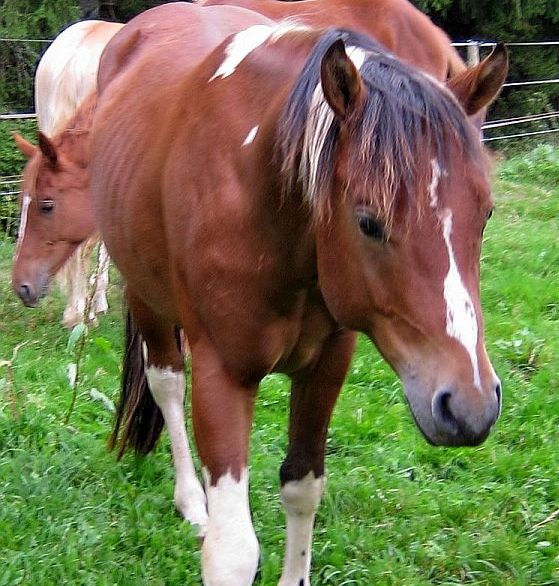 Mein "Kleiner", ein 3,5 jähriges Quarterpony, ist seit Donnerstag von der Hengstweide zuhause und wohnt jetzt dauerhaft bei mir! Er ist auch praktisch roh und wird jetzt als erstes mal kastriert. Im Moment muss er mit dem Araber in einer 2er-WG wohnen, weil in der anderen 2er-WG seine Mama lebt ;) Ich hoffe, dass ich bald alle zusammen lassen kann, so ist es doch ziemlich umständlich ;)
