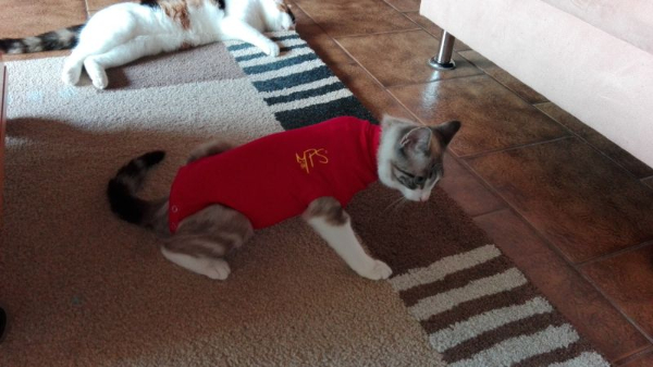 Fazit: Fieber, Entzündung im Bauch, Antibiotika, Entzündungshemmer und ein Body, damit nichts an die Wunde kommt. Und wir hoffen, daß nicht nachoperiert werden muß. :ohhh: