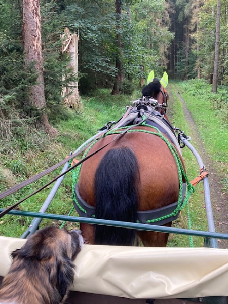 Ein paar der Oktoberkilometer haben wir gestern mit der Kutsche absolviert. Seit Ewigkeiten mal wieder angespannt. Und das Pferdchen lief, als wenn es letzte Woche gewesen wäre.