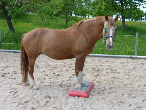 so mache ich noch alles mit ihr: Bodenarbeit, das richtige longieren nach dem LK bringe ich ihr gerade bei, lange ausritte, dressur wo sie auch mal ordentlich vorwärts schicke und sie in versuche ansatzweise in anlehung zu reiten (erstes weil ich denke, es ist gut, wenn das pferd muskeln aufbaut, vorallem die ricchtigen), springgymnastik, laufen lassen