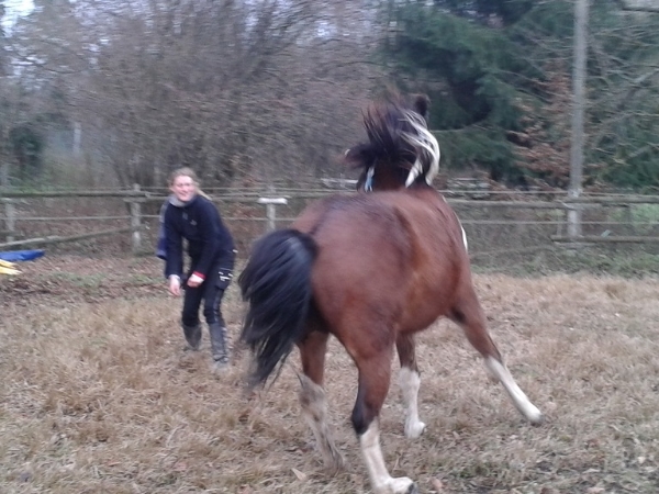 Ich hab ein paar Fotos von so einer Spielaktion. Einige sind etwas "kritisch". Ich wollte aber am Anfang unbedingt, dass nicht nur ich ihn schicke, sondern er auch mich jagen darf, damit er sich nicht an ein Join Up erinnert fühlt. Mittlerweile findet er mich jagen mega ätsch, das ist langweilig weil viel zu langsam.