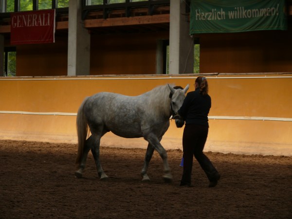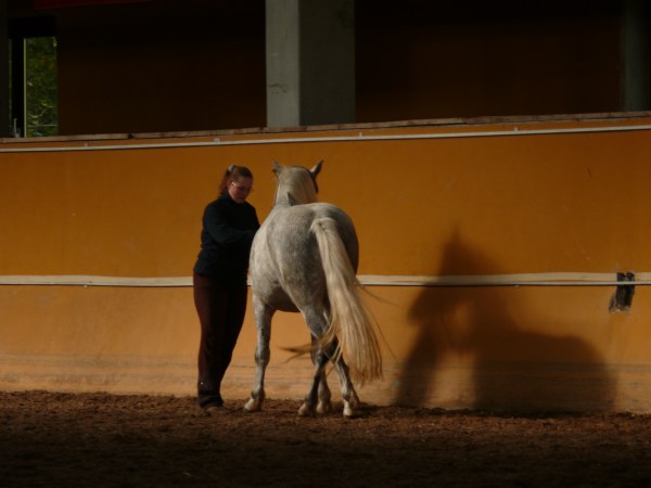 Trotzdem fingen wir ein bißchen später an und unsere zweite Berlinerin fing an, mit einem Pferd aus unserem Stall, der eigentlich noch nie nach LK gearbeitet wurde. Im Laufe des Kurses stellte sich raus, dass er ihn wahrscheinlich gelesen hatte und er blühte richtig auf und ich dachte nicht, dass er mit seinen Problemchen so laufen kann.