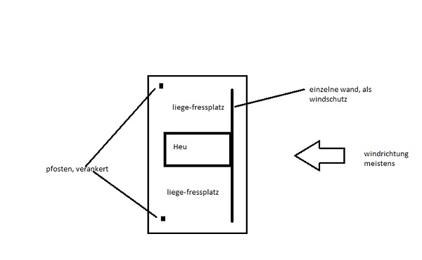 Ich dachte vielleicht ein dach und ein heulager in der mitte oder sowas? nur mit pfosten, ohne seitliche waende?